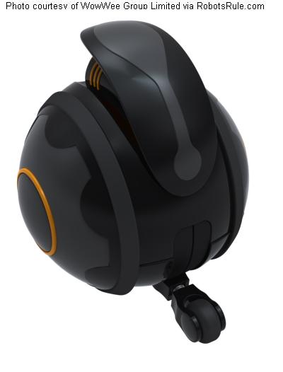Spyball has two revolving domes, one per side that act as wheels. The middle section is unmoving and holds the camera. In its closed state, the camera folds down and a balancing wheel tucks into the body. In this state, you can roll the ball along the ground. It has a bottom weight which is used to correct its positioning when it comes to a stop. This orients Spyball into the correct position for the changing to the camera or open state. Once activated electronically the head and balancing wheel pop out to allow you to start driving it again.