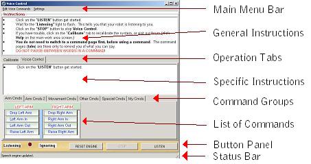 Specific Instructions - look here to find context sensitive help. Whenever you do anything with the Voice Control system, this box will give you specific instructions on what you can do at any point in the system.